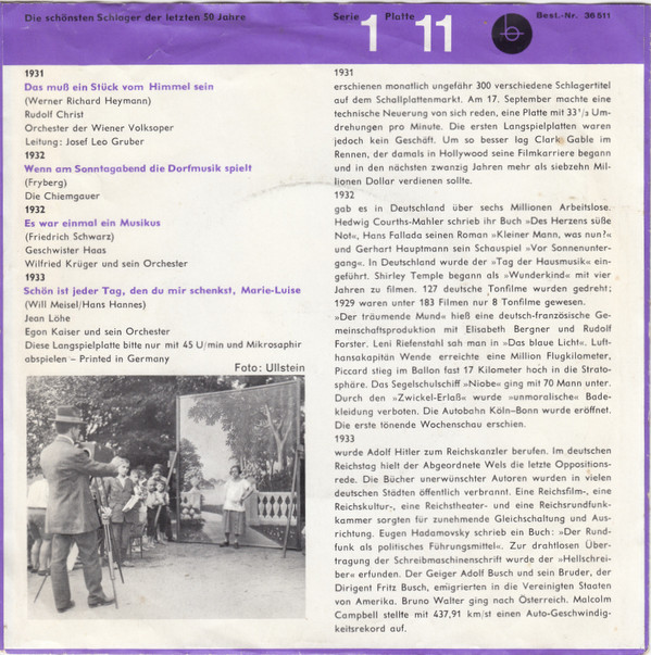 Various – Die Schönsten Schlager Der Letzten 50 Jahre - Serie 1, Platte 11
