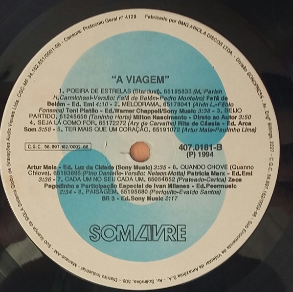 - Manufactured By – BMG Ariola Discos Ltda. Divisão Sonopress
