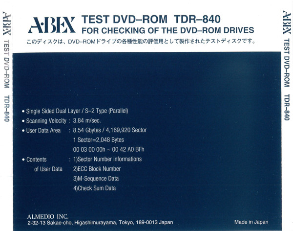 Лейбл: Almedio Inc. – TDR-840 A-BEX Laboratories Inc. – TDR-840