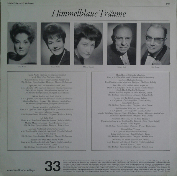 Conductor – Werner Eisbrenner Lyrics By – Willy Dehmel Music By – Franz Grothe Orchestra – Berliner Symphoniker Soprano Vocals – Renate Holm |