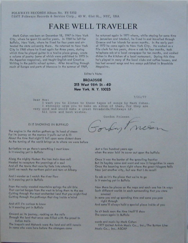 Mark Cohen – Fare Well, Traveller