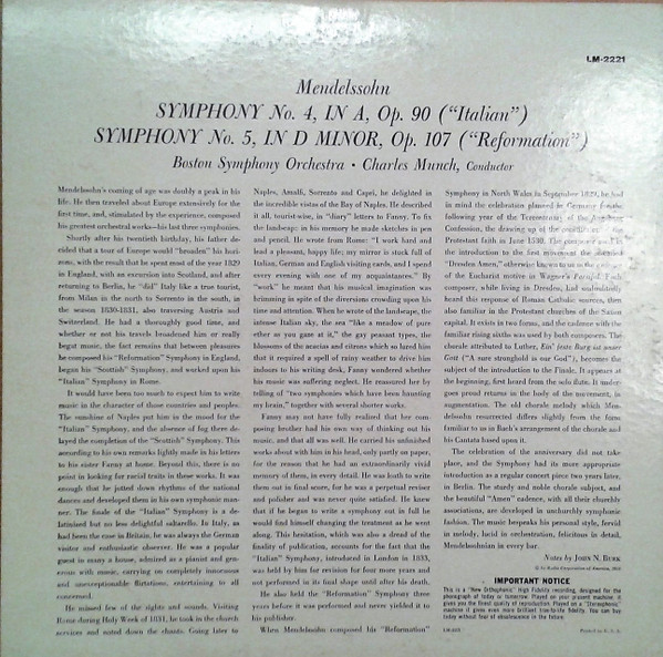 Italian And Reformation Symphonies