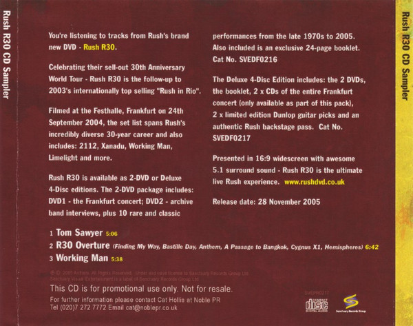 Rush – R30 CD Sampler