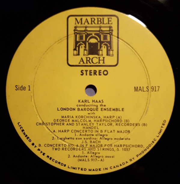Johann Sebastian Bach – Music of Bach & Handel Karl Haas conducting The London Baroque Ensemble