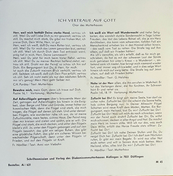 Aidlinger Schwesternschaft - Chor Im Mutterhaus – Ich Vertraue Auf Gott