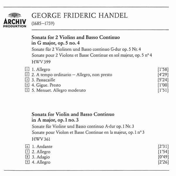 | Sonata For 2 Violins And Basso Continuo In G Major, Op. 5 No. 4 |