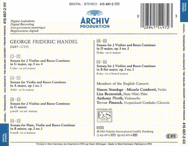 | Лейбл: | Archiv Produktion – 415-497-2 |