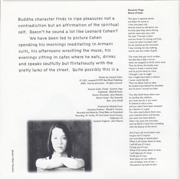 Suzanne Vega Acoustic Guitar, Vocals – Suzanne Vega Bass – Jerry Scheff Drums, Percussion – Jerry Marotta Electric Guitar – Ron Sexsmith Engineer [Assistant] – John Paterno Executive-Producer – Ronald K. Fierstein Keyboards – Mitchell Froom Producer – Mitchell Froom Recorded By, Mixed By – Tchad Blake |