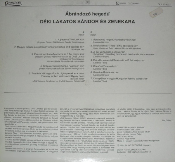Sándor Déki Lakatos And His Gipsy Band