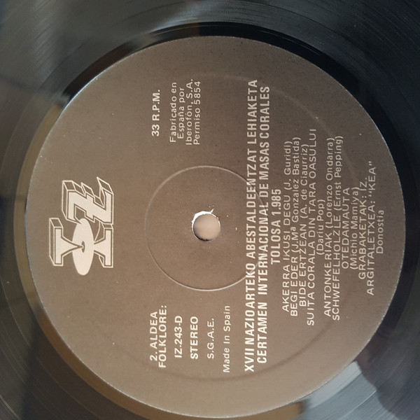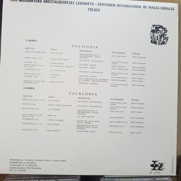 Various – XVII Nazioarteko Abestaldeentzat Lehiaketa - Certamen International De Masas Corales Tolosa 1985