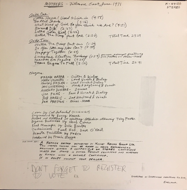 The Mothers – Fillmore East June 1971